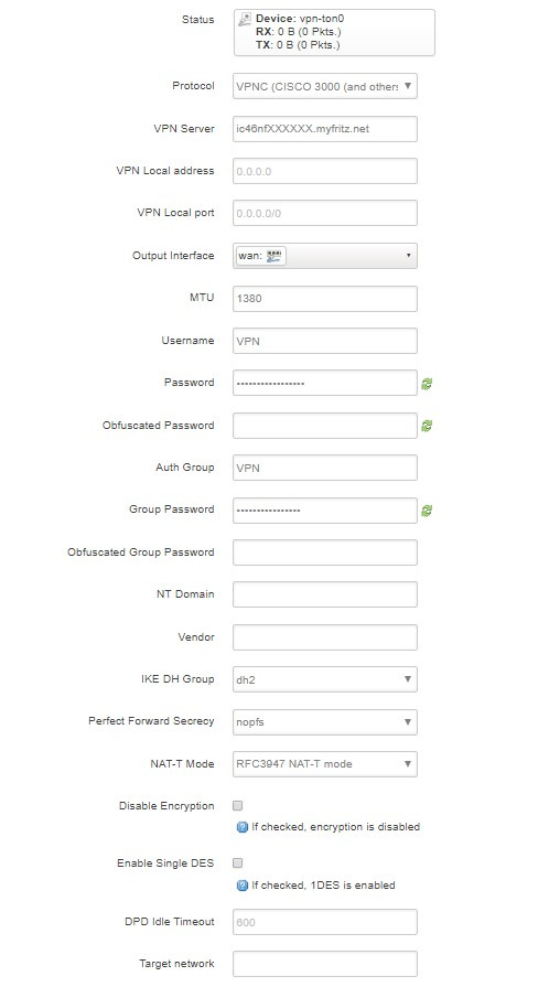 The VPN tunnel is up and I got an IP address from the FritzBox.
