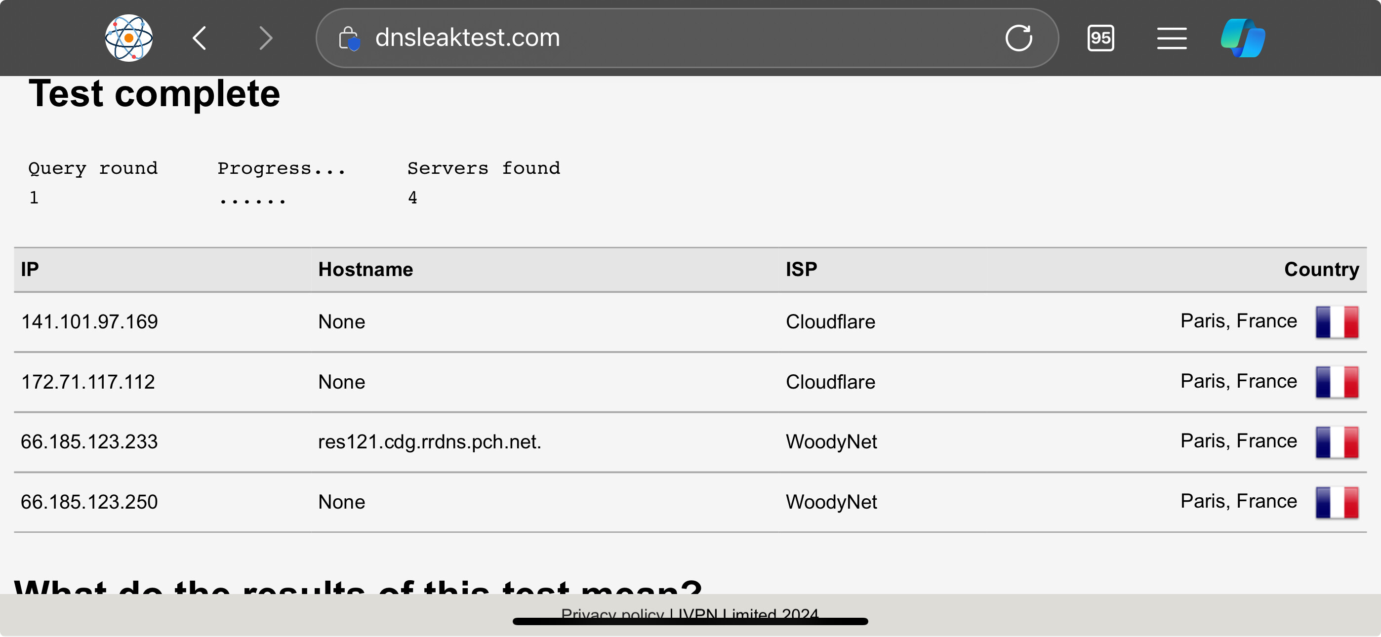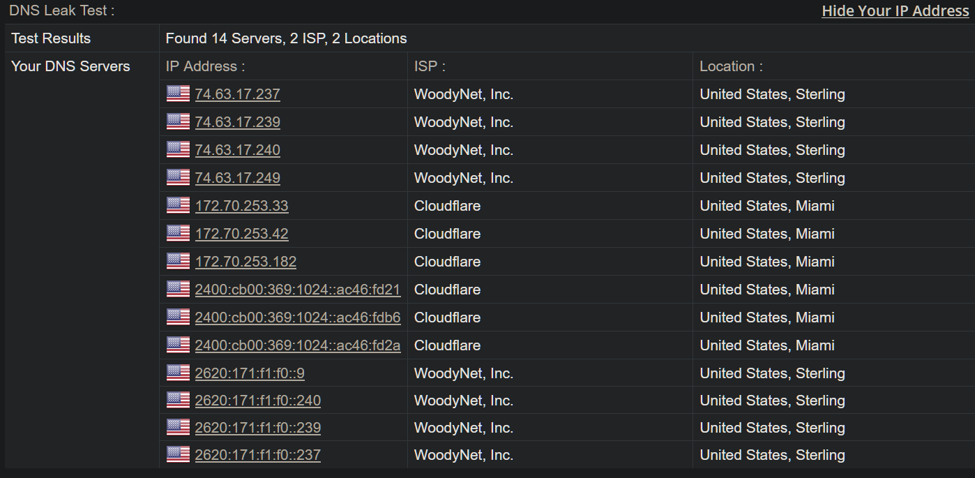 And here the dnsleaktest results:
