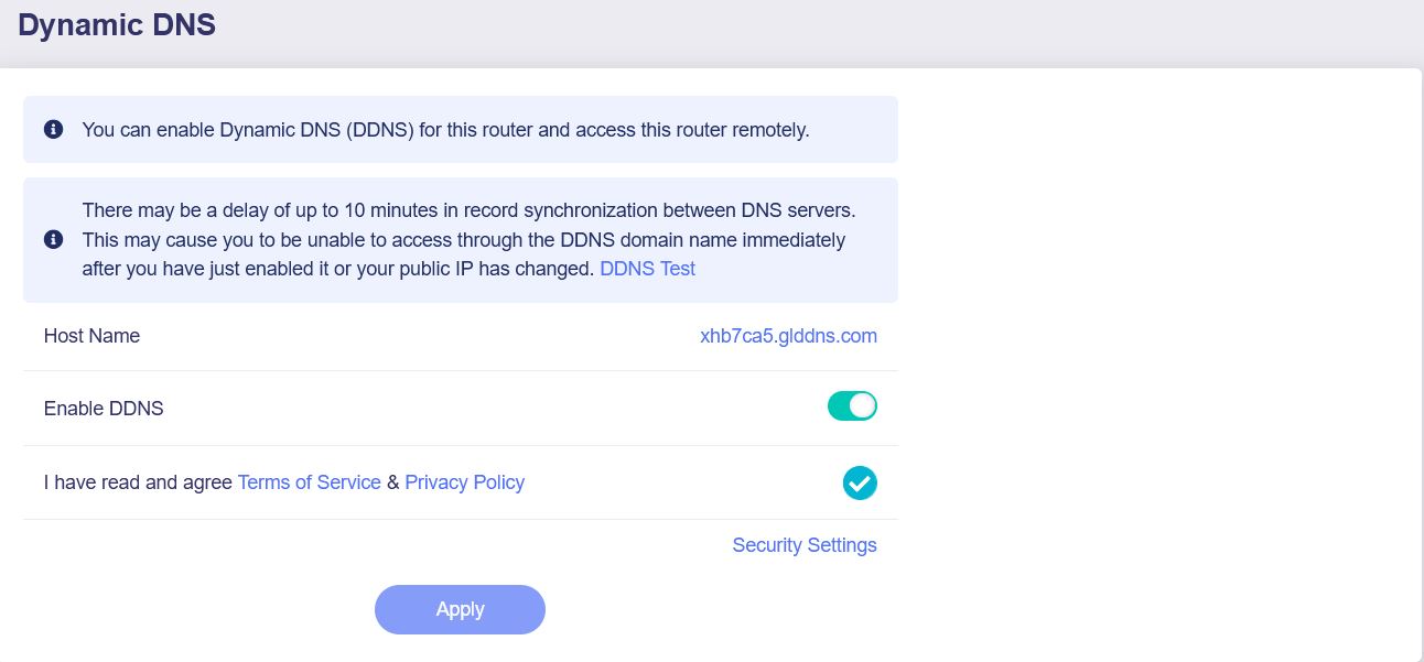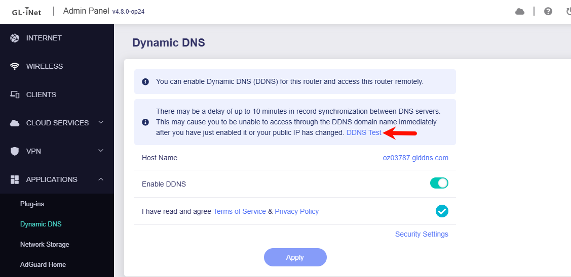After enabling DDNS on MT6000, click DDNS test to see if there is any issue.